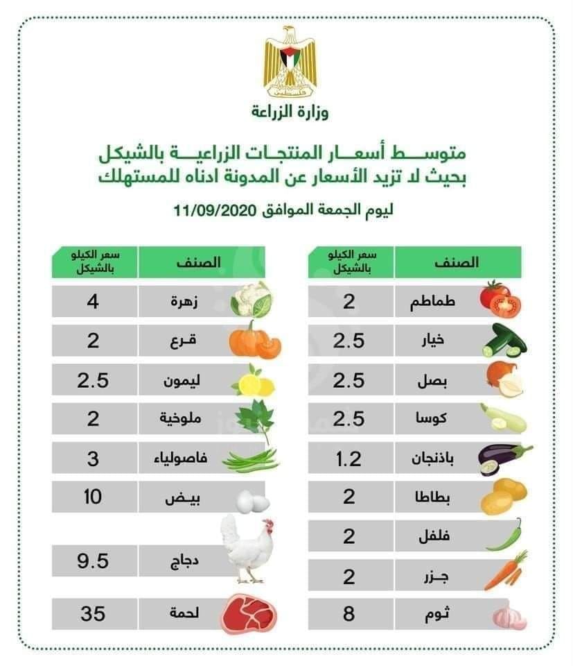 أسعار الخضراوات اليوم الجمعةالحياة برس - أسعار الخضراوات واللحوم والدجاج في غزة اليوم الجمعة calendar_month11/09/2020 10:24 am