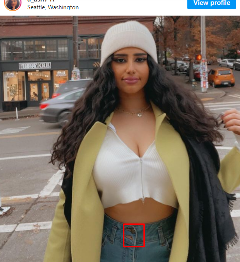 حيث نشرت صورة وقد نسيت اغلاق زر بنطالها، وكان واضحاً ذلك لأنها إرتدت البنطال نفسه في صور سابقة وبدت عروته بزرين، إلا أن صورتها الأخيرة ظهرت بزر واحد.