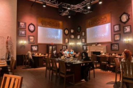 وينظم المطعم عروض رعب متقطعة لمجموعة مكونة من 24 ممثلا، تتراوح مدتها بين 10 و12 دقيقة، إذ يدخلون بطريقة مدروسة، ويعرض في الوقت نفسه فيلم يتوافق مع العروض في السيناريو والمشاهد.