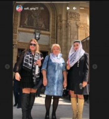 وظهرت صافيناز بجوار إمرأتين أمام مبنى كبير.