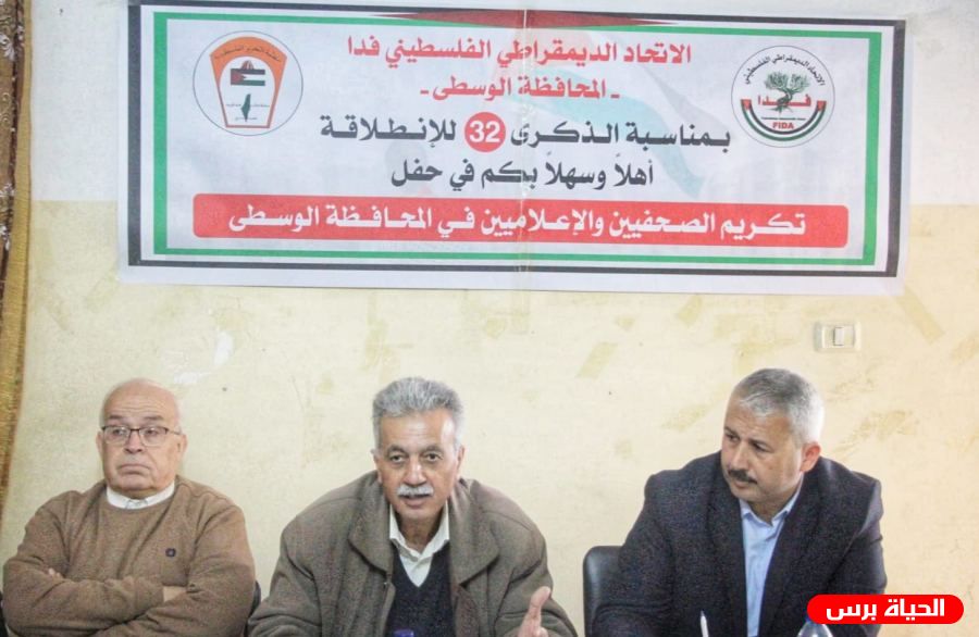 الحياة برس - نظم الإتحاد الديمقراطي الفلسطيني فدا في محافظة الوسطى أحتفالية تكريم عدد من الصحفيين والإعلاميين و ذلك على شرف الذكرى "32" لإنطلاقة حزب فدا .