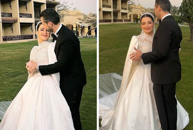 وظهرت شام الذهبي بفستان أبيض برفقة عريسها، وتفاعل المغردون مع الصور بشكل كبير، مبدين إعجابهم بإطلالة شام.