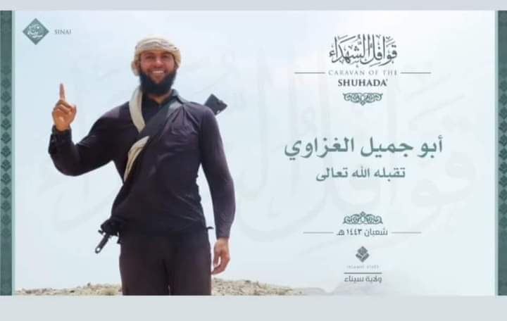 الحياة برس - اعلن تنظيم داعش في سيناء المعروف باسم "ولاية سيناء" مساء الجمعة، عن مقتل احد عناصره ويدعى مصعب جميل مطاوع، من سكان قطاع غزة.
