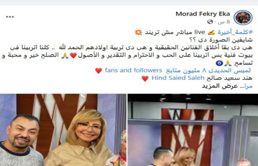 بدوره نشر مراد فكري صادق، صورة تجمعه بهند سعيد صالح وعبر خلالها عن سعادته بانتهاء الأزمة التي حدثت بين هند ووالده.