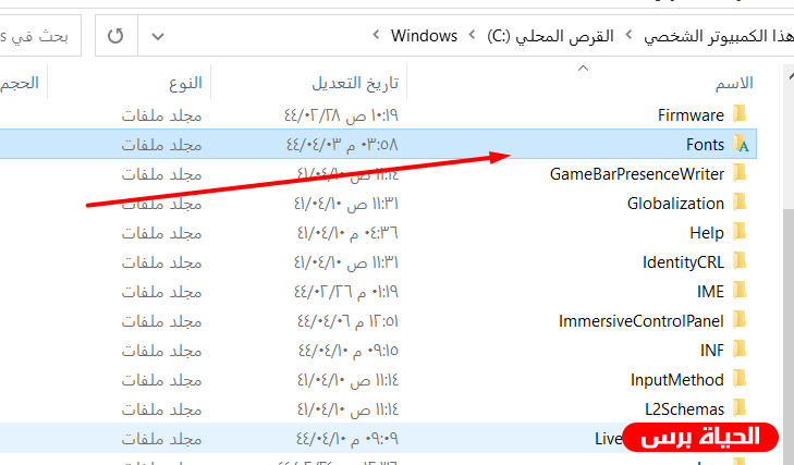 - ستتعرف على إمتداد ملف Fonts داخل مجلد الويندوز