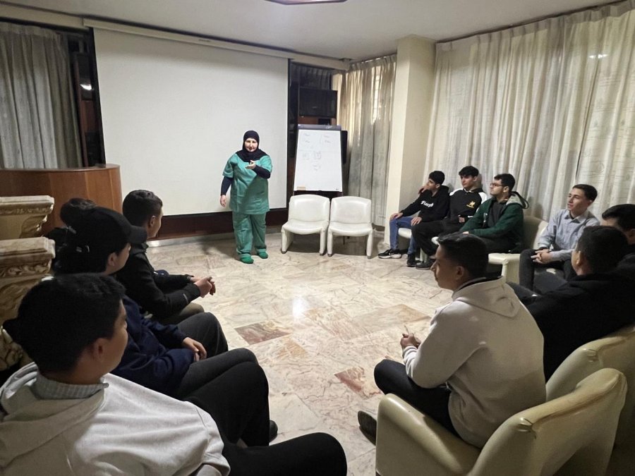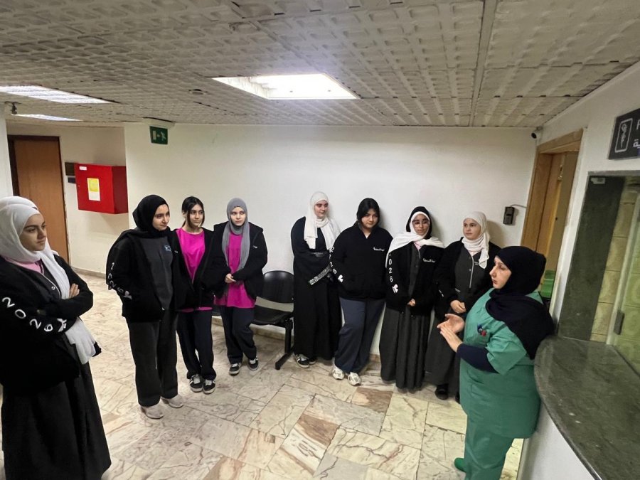 كان في استقبال الطلاب مسؤولة قسم العمليات السيدة ناديا قرنبش، التي رحّبت بهم وقدّمت عرضًا تعريفيًا شاملاً عن المستشفى، متناولةً عدد الأسرّة، وطبيعة العمليات الجراحية التي تُجرى، إضافة إلى أقسام العناية الفائقة، والمختبر، والطوارئ، وآلية التنسيق بين هذه الأقسام لضمان أفضل رعاية طبية للمرضى.