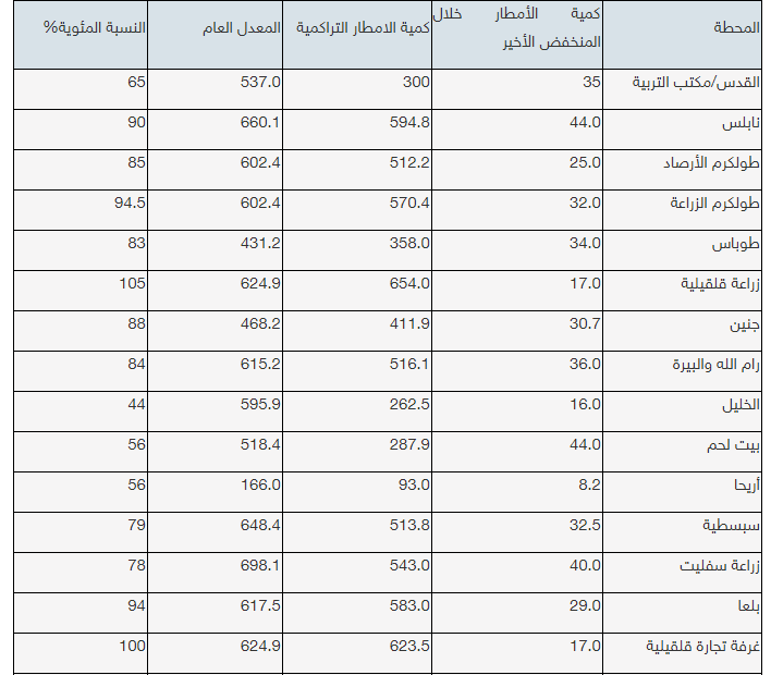 - وفيما يلي جدول يوضح كميات الأمطار: