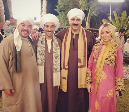 ونشرت هند عبر صفحتها على انستغرام صورة من كواليس تصوير العمل وظهرت ترتدي الجلباب الصعيدي برفقة احمد فهمي ومحمد عبد الرحمن.
