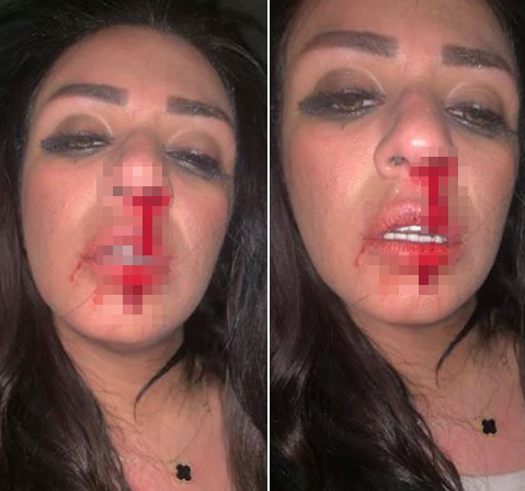 ونشرت شاهيناز صوراً لها من خلال حسابها على فيسبوك توضح تعرضها للضرب وأثار الدماء على وجهها.