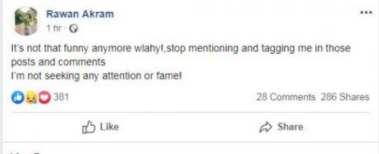 وقالت روان على حسابها في فيسبوك:" توقفوا عن تذكيري بتلك الصور، والمشاركات والتعليقات، فأنا لا أبحث عن أي اهتمام أو شهرة".