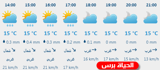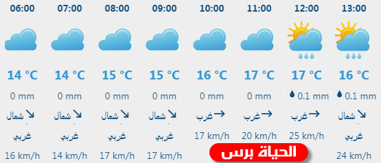 هذه الليلة : يكون الجو غائماً جزئيا وشديد البرودة ، تبقى فرصة ضعيفة لسقوط امطار محلية خفيفة متفرقة فوق بعض المناطق ، والرياح شمالية غربية معتدلة السرعة والبحر متوسط ارتفاع الموج .