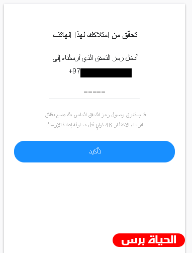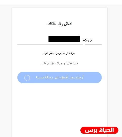 3- ستظهر لك صفحة تحتوي على رقم الهاتف الذي كتبته قم بالضغط على زر " أرسل رمز التحقق عبر رسالة نصية ".