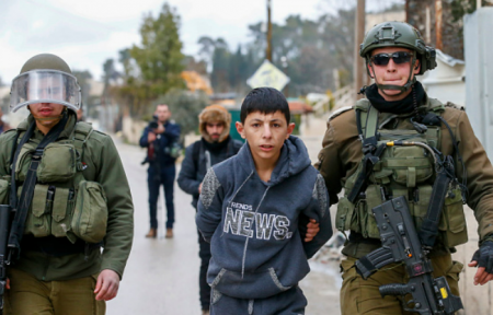 الطفل كريم أنور تلالوة (12 عاماً) خلال اقتحام بلدة عرابة. شهدت...