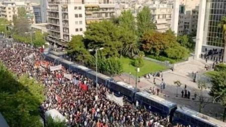 اليسا رية والاحزاب السياسية اليونانية في مظاهرتهم ضد الفاشية،...