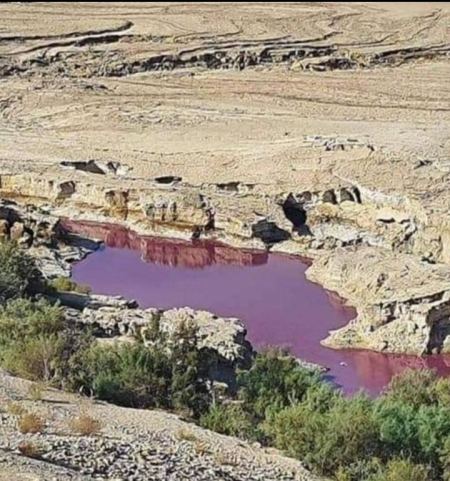 الحياة برس - ظهرت برك من مياه حمراء اللون مجهولة المصدر، قرب البحر...