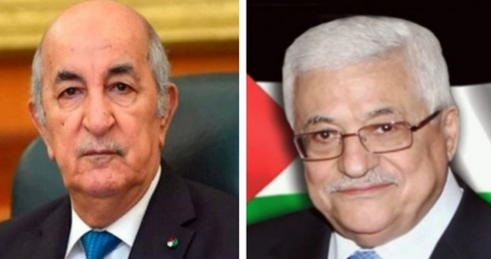 الجزائر ي عبد المجيد تبون. وشكر سيادته، نظيره... الجزائر ي على مواقف... الجزائر الثابتة والداعمة للشعب الفلسطيني ونصرة قضيته العادلة...