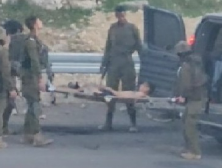 الطفل محمد نضال سليم "15 عاماً"، بعد إعدامه من جنود الإحتلال... الطفل سليم أصيب برصاص الاحتلال في الظهر، بالإضافة لإصابة... الطفل محمد سليم وإصابة رفاقه. استشهاد...