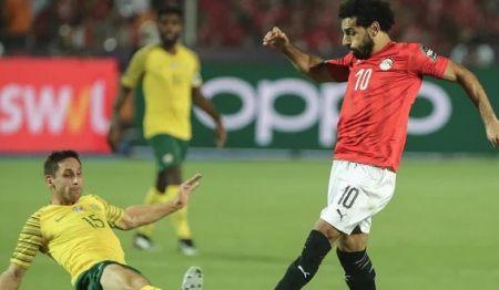 محمد صلاح ولعبها المحمدي برأسه نحو المرمى ولكنها ارتطمت بيد...