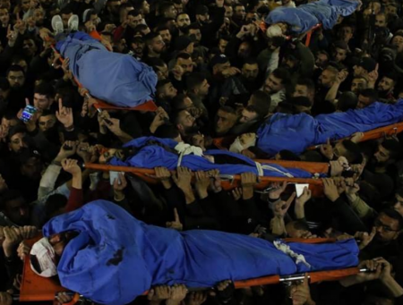 فلسطين ية قدمت خلال العام الماضي 20 شهيدا من خيرة أبنائها. وتابع:... فلسطين ي لإعادة الجثمان إلى مركبة الإسعاف واستكمال التشييع...