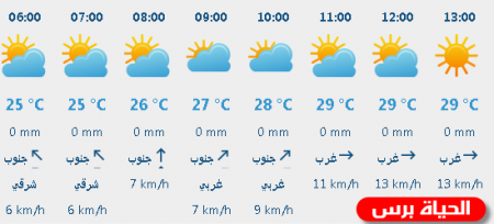 الحياة برس - توقعت دائرة الأرصاد الجوية الفلسطينية أن يكون الجو صافياً بوجه عام وحاراً نسبياً في المناطق الجبلية حاراً إلى شديد الحرارة في بقية المناطق، ويطرأ ارتفاع آخر على درجات الحرارة لتصبح أعلى من معدلها السنوي العام...