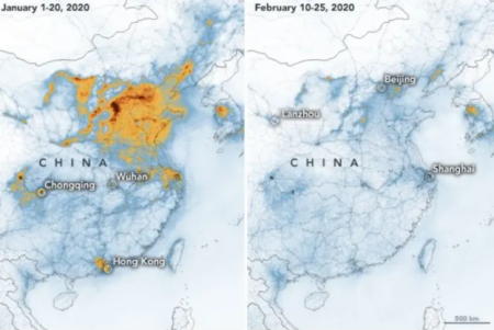 ناسا الفضائية، أظهرت الصور انخفاض ملموس على مستويات التلوث... ناسا حسب متابعة الحياة برس، إن انخفاض مستويات ثاني أكسيد... ناسا : "هذه هي المرة الأولى التي أرى فيها انخفاضاً هائلاً...