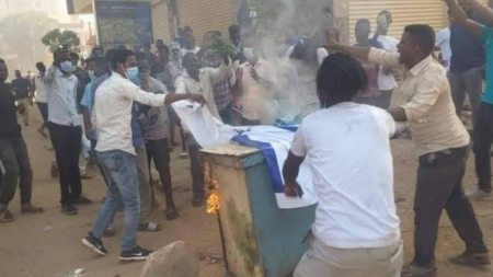 الحياة برس - أحرق متظاهرون سودانيون علم دولة الإحتلال الإسرائيلي، خلال مسيرة منددة بالتطبيع السوداني - الإسرائيلي، في العاصمة الخرطوم الأربعاء. وردد المشاركون في المسيرة شعارات منددة بالتطبيع مطالبين بالتراجع عن هذه الخطوة،...