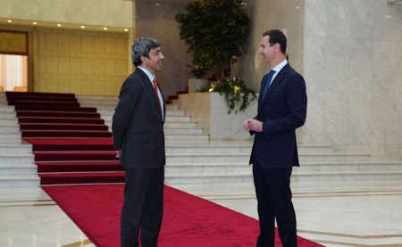 سوريا منذ ما يزيد عن 10 سنوات. ورافق الوزير الإماراتي كلاً... سوريا أثر سلباً على كل الدول العربية معرباً عن ثقته بعودة... سوريا بقيادة بشار الأسد وجهود شعبها، وأنها ستتجاوز كل التحديات...