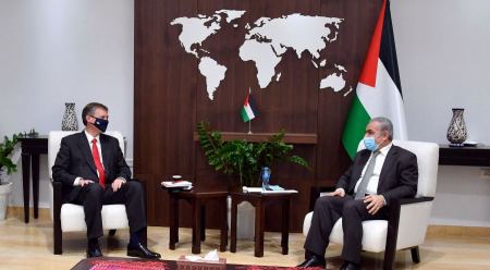 محمد اشتية ، اليوم الخميس في مكتبه بمدينة رام الله، مع القنصل...