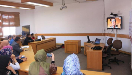 الولايات المتحدة الأمريكية لإلقاء محاضرة أكاديمية عبر skype، بحضور عددٌ من طلبة...