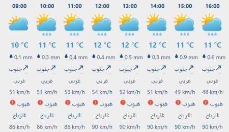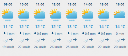 منخفض جوي لذا يكون الجو غائماً جزئياً إلى غائم وبارداً خاصة... منخفض جوي على البلاد لذا يطرأ انخفاض على درجات الحرارة ليصبح... منخفض جوي آخر لذا يكون الجو غائماً جزئياً إلى غائم وبارداً...